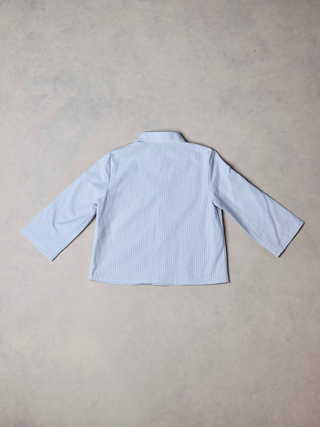 while fine white pinstripes—woven, not printed—echo the rhythm of morning light through shutters.